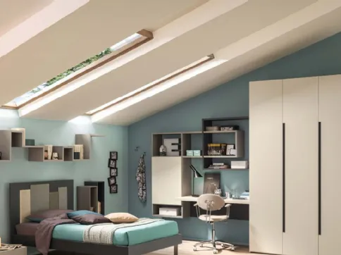 Camerette componibili per ragazzi: scopri il modello in laccato opaco VG302 di Moretti Compact per stanzette moderne.