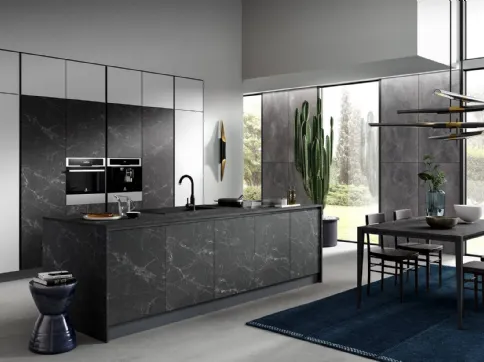 Se cerchi una cucina moderna, ottieni informazioni sul modello Stratos Gres con penisola Mobilturi.